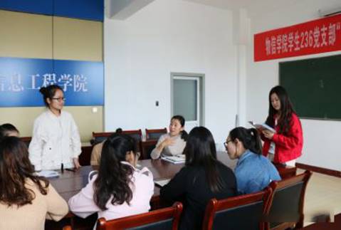 2018年10月18日下午1:00,我院学生236党支部在四号楼二层多功能会议室举办了“我为评估做贡献,党员先锋我先行”主题党日活动。学生236党支部全体在校党员参加了会议,会议由党支部书记岳文慧主持。
