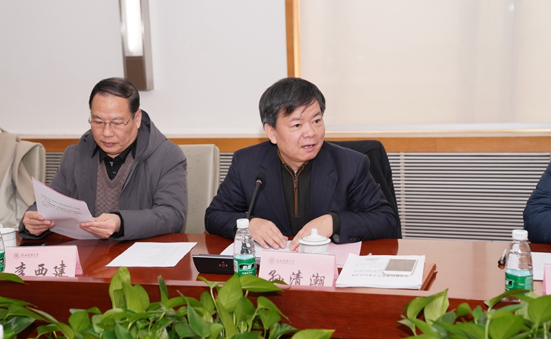 我院党委书记、“皮影传承基地”执行主任孙清潮介绍了基地建设的背景、目标,对我校一流学科建设的支撑作用、人才培养特色的彰显作用、科学研究新领域的促进作用、大学生创新创业的孵化作用,以及形成校园文化亮点等方面的作用和意义,并就拟建的“汪天稳皮影艺术馆”相关情况做了说明。
