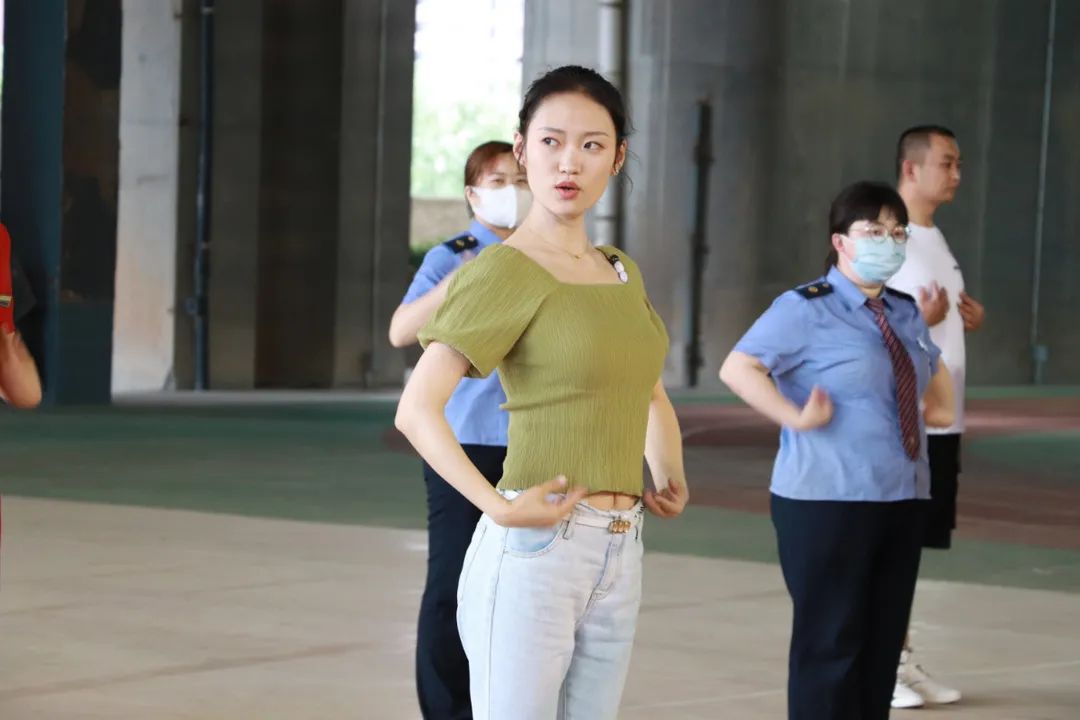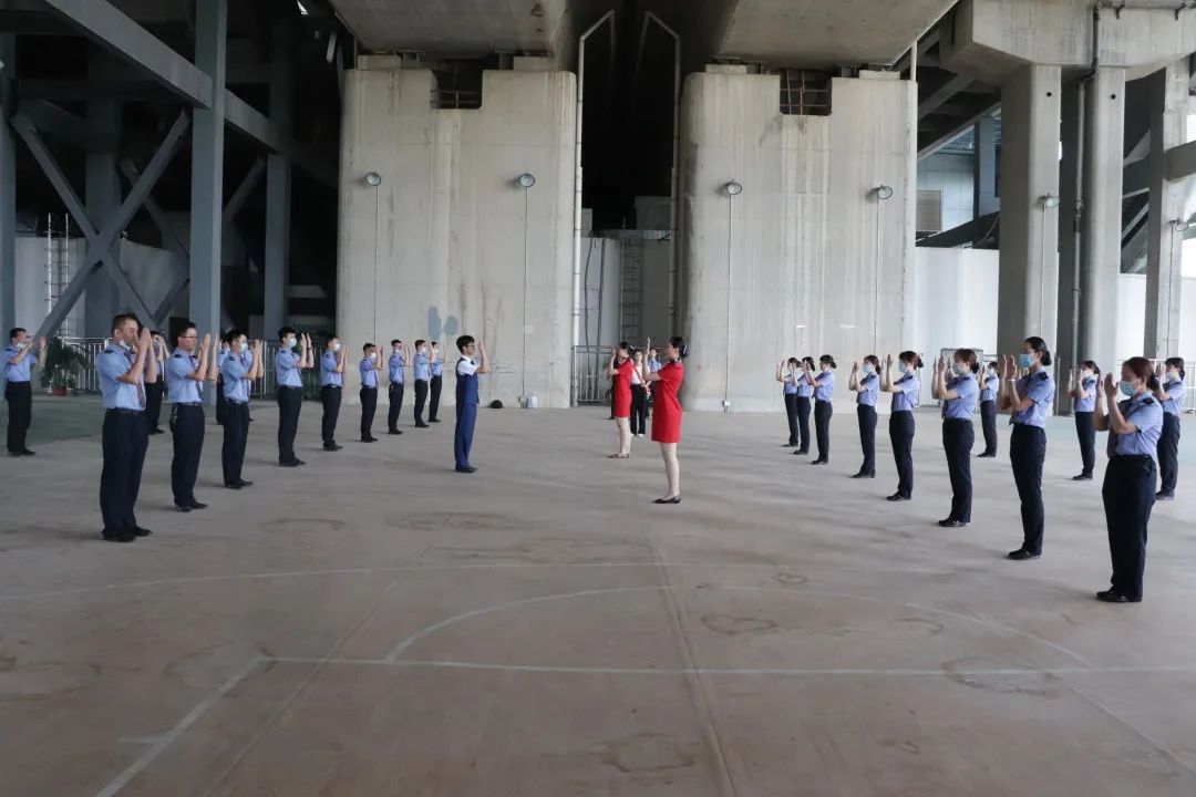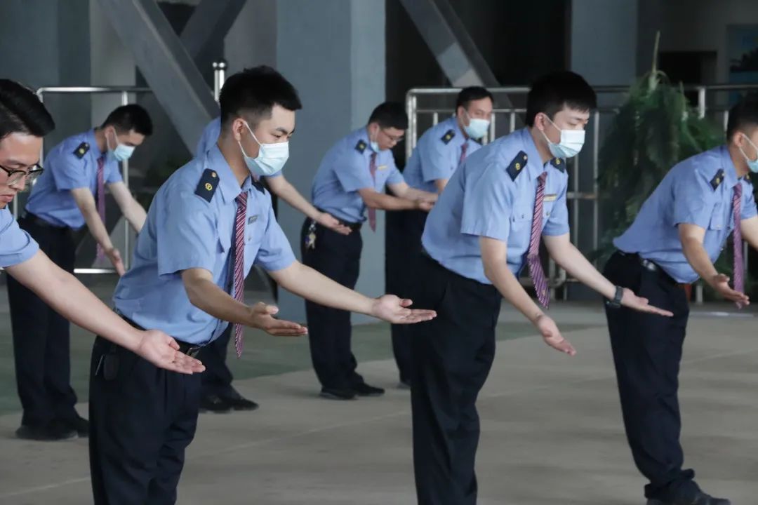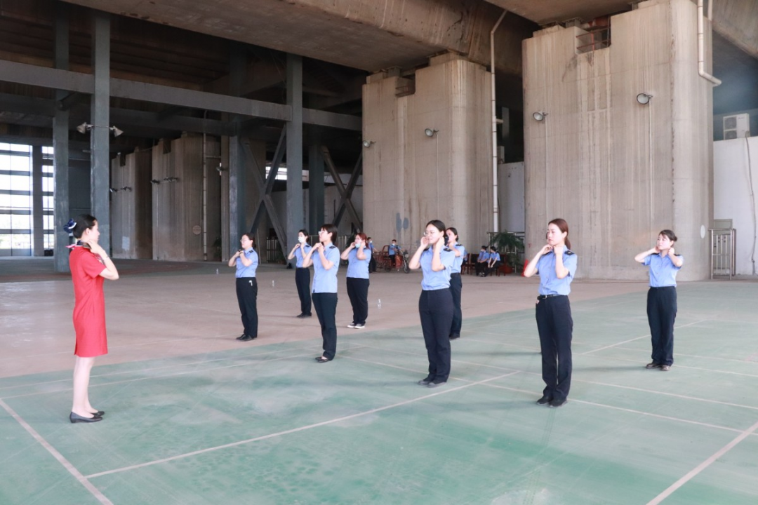在礼仪操的教学工作中北站的工组人员积极配合,认真学习,仔细地练习每个动作。