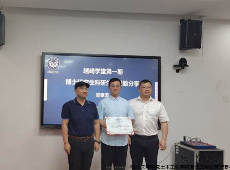 最后,学院领导袁油迪和沙鹏为梁秦源博士颁发了越崎学堂活动证书。