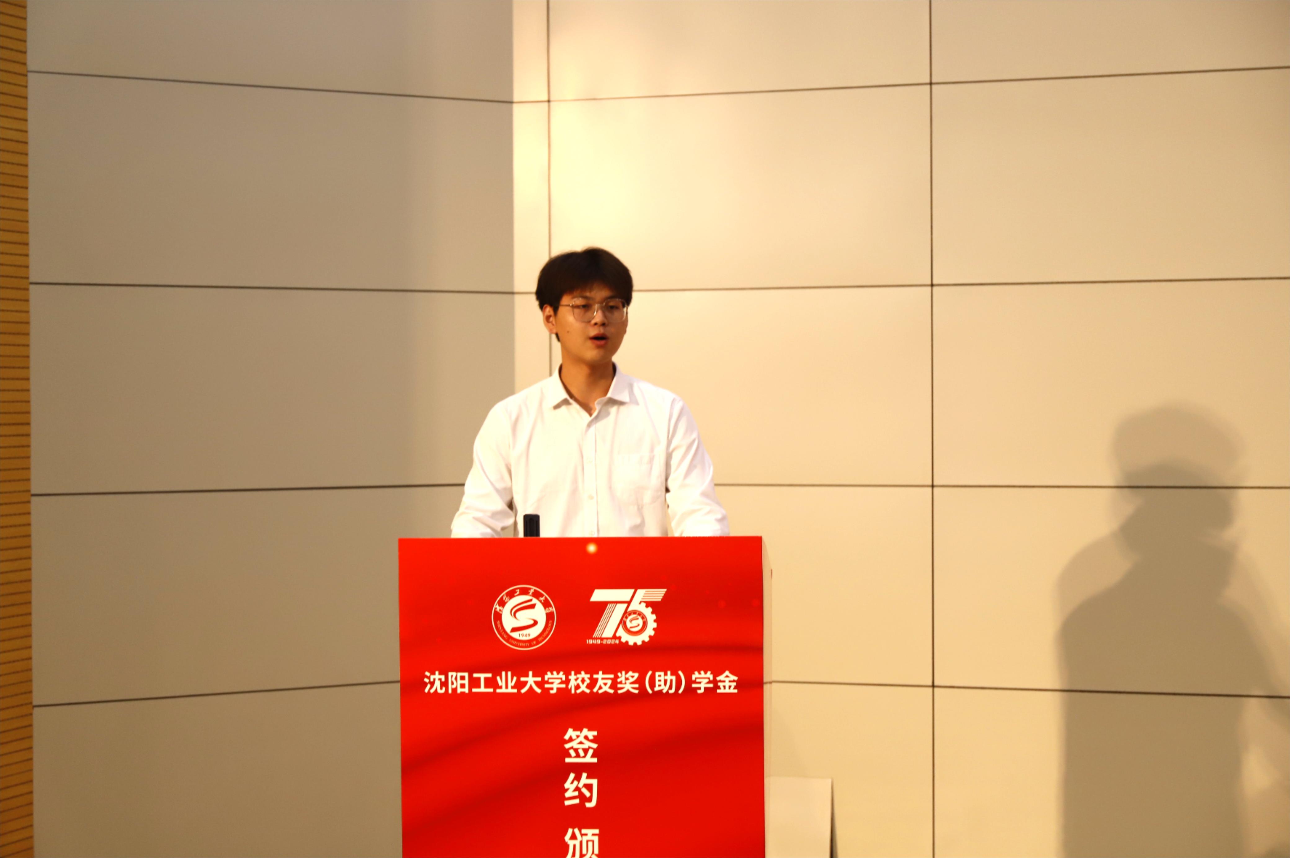 材料科学与工程学院曲晓涵、软件学院于震淏作为获奖学生代表发言。他们对校友企业及校友表示感谢,同时也分享了在校的学习及实践情况,并将以优秀校友为榜样,努力学习,全面提升自己,把关爱转化为实际行动,传承爱心,把这份温暖传递给更多人。