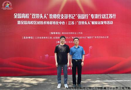5月22日,全国高校“双带头人”教师党支部书记“强国行”专项行动江苏行暨全国高校区域技术转移转化中心(江苏)“双带头人”赋能站发布活动在苏州大学天赐庄校区举行。江苏省委教育工委副书记、江苏省教育厅党组成员潘漫,全国高校“双带头人”教师党支部书记“强国行”专项行动办公室主任、南京大学党委副书记焦瑞华出席并讲话,我校党委书记张晓宏致辞,全国高校思想政治工作网负责人出席。来自全国180余个高校“强国行”团队负责人代表,全国高校区域技术转移转化中心(江苏)4个分中心负责人,省内20余个产业链党组织负责人,25所高校党委组织部负责人等参与此次活动。教育部和江苏省携手在2024年9月共建首个全国高校区域技术转移转化中心,首批确定生物医药、信息通信、先进材料三大产业方向。本次活动同步设置平行分会场,围绕生物医药、信息通信、先进材料三个领域,与会代表互动交流、深入对接。