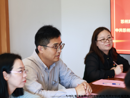 苏州托普学院机电技术学院院长朱仁盛介绍了学院的基本情况和党建工作成果,通过此次双方支部共建活动,深化资源整合、优势互补、共建共享、共建平台,以党建工作的高质量推动两校事业的高质量发展。随后,苏州高博职业学院国际商学院党总支副书记张志豪介绍学院基本情况和党建工作情况,并希望通过共建活动,整合资源、深化共建,开展活动、增强活力,服务发展,实现党建工作与中心工作良性互动,充分发挥党建对业务工作的引领和保障作用,推动两校党建工作再上新台阶。