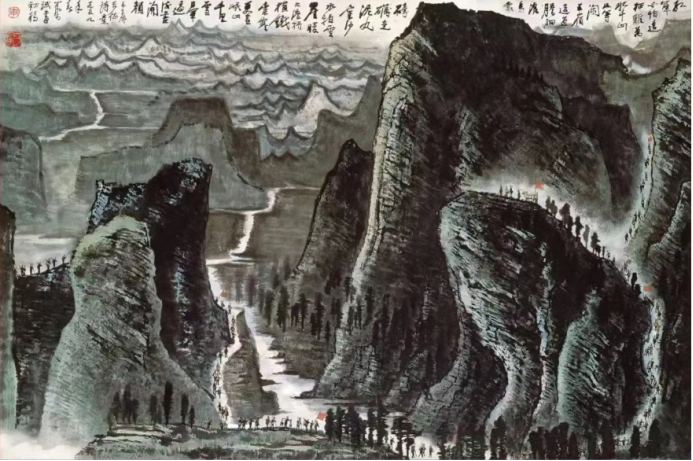 1959年在新中国成立十周年之际原中国革命博物馆邀请李可染,以毛泽东同志的《七律·长征》为题创作了这幅山水画。