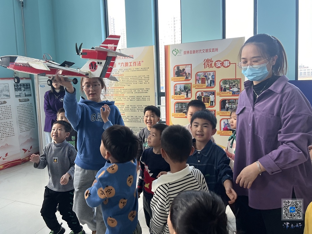 津南十五幼付宇弘小朋友兴高采烈地说道:“大哥哥大姐姐们给我讲了许多知识,让我看了遥感汽车、大飞机,还有无人机是什么样的,我还操控了它们,我觉得科技特别好玩,也特别神奇。”
