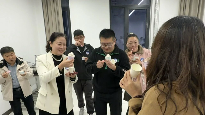 本次活动特邀南蔡村中心小学教师代表参与,共同推动大中小学思政一体化建设走深走实。活动中,支部党员教师与小学教师就实践育人模式进行了深入交流,并详细介绍了山楂糕、冰淇淋等食品的制作工艺与科学原理。通过“大手拉小手”的校际协作形式,本次活动为未来双方持续合作、实现高等教育与基础教育的有机衔接奠定了坚实基础,有效拓展了育人边界,丰富了育人内涵。