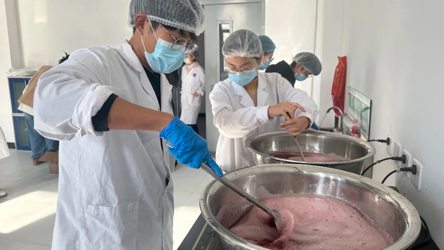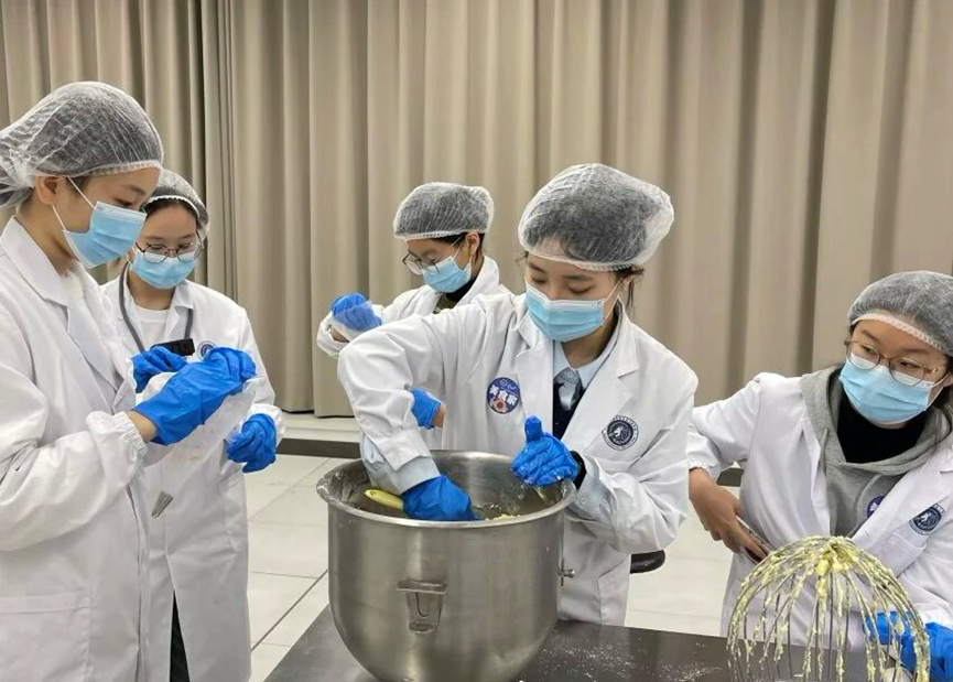 活动现场,党支部依托专业优势,设立“酥香实验室”“食光酵主·手工酸奶站”“冰纷食光·舌尖造梦局”“红果食研社”等多个实践展区,将食品科学与党建育人深度融合。党员教师现场授课、手把手指导,学生们在“做中学、学中思、思中悟”,不仅提升了专业技能,更增强了对专业的认同感和使命感。