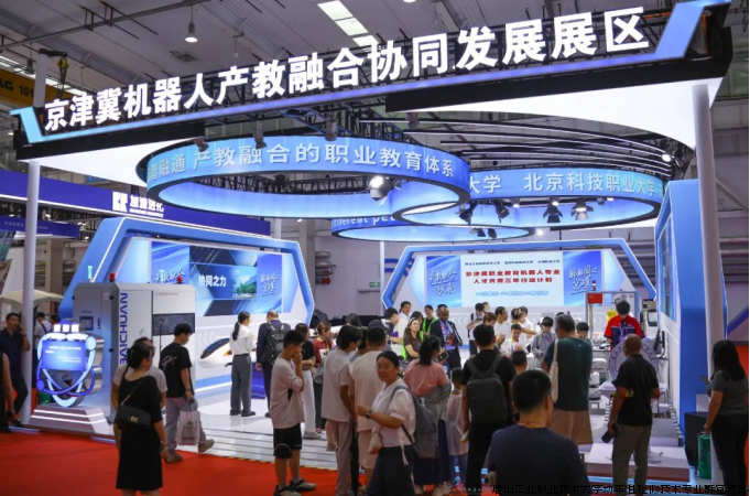 作为京津冀协同发展和产教融合的生动实践窗口,展区不仅集中呈现了“协同之力”与“融合之光”的丰硕成果,更搭建了一个促进机器人产业与人才培养深度融合的重要平台,三地校企携手努力把习近平总书记指出的“在社会主义现代化国家新征程中,职业教育前途广阔,大有可为”的殷切希望,转化成产教融合服务京津冀协同发展大有作为的生动实践。