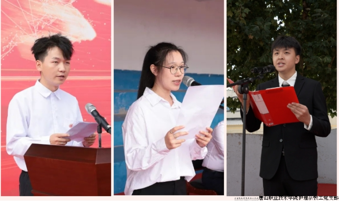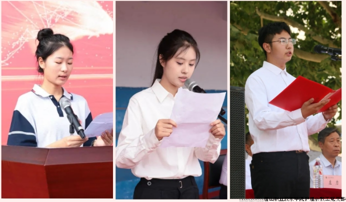 农林系2022级工程造价1班张宇晨、口腔系2023级口腔医学2班郭嘉佳、机电系2023级机电3班吴春甫作为在校生代表,结合自己的成长经历,与新生分享了在校学习收获,表达了对学校的热爱、对老师的感恩。希望同学们树立远大的理想和奋斗目标,不断积累知识、锤炼本领。
