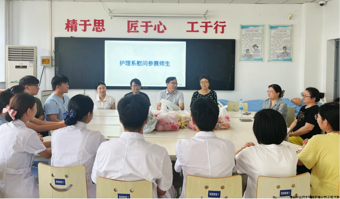唐山职业技术学院护理系教工党支部作为第四批“全国党建工作样板支部”培育创建项目单位,始终将党建工作与教育教学深度融合,以实际行动践行初心使命。2025年8月5日下午,护理系主任韩景新、党总支副书记孙珂、副主任马征带领辅导员及教师代表开展暑期慰问活动,为放弃休假、全力备战全国职业院校技能大赛的师生送去防暑降温物资,以关怀凝聚力量,用担当助力备赛。