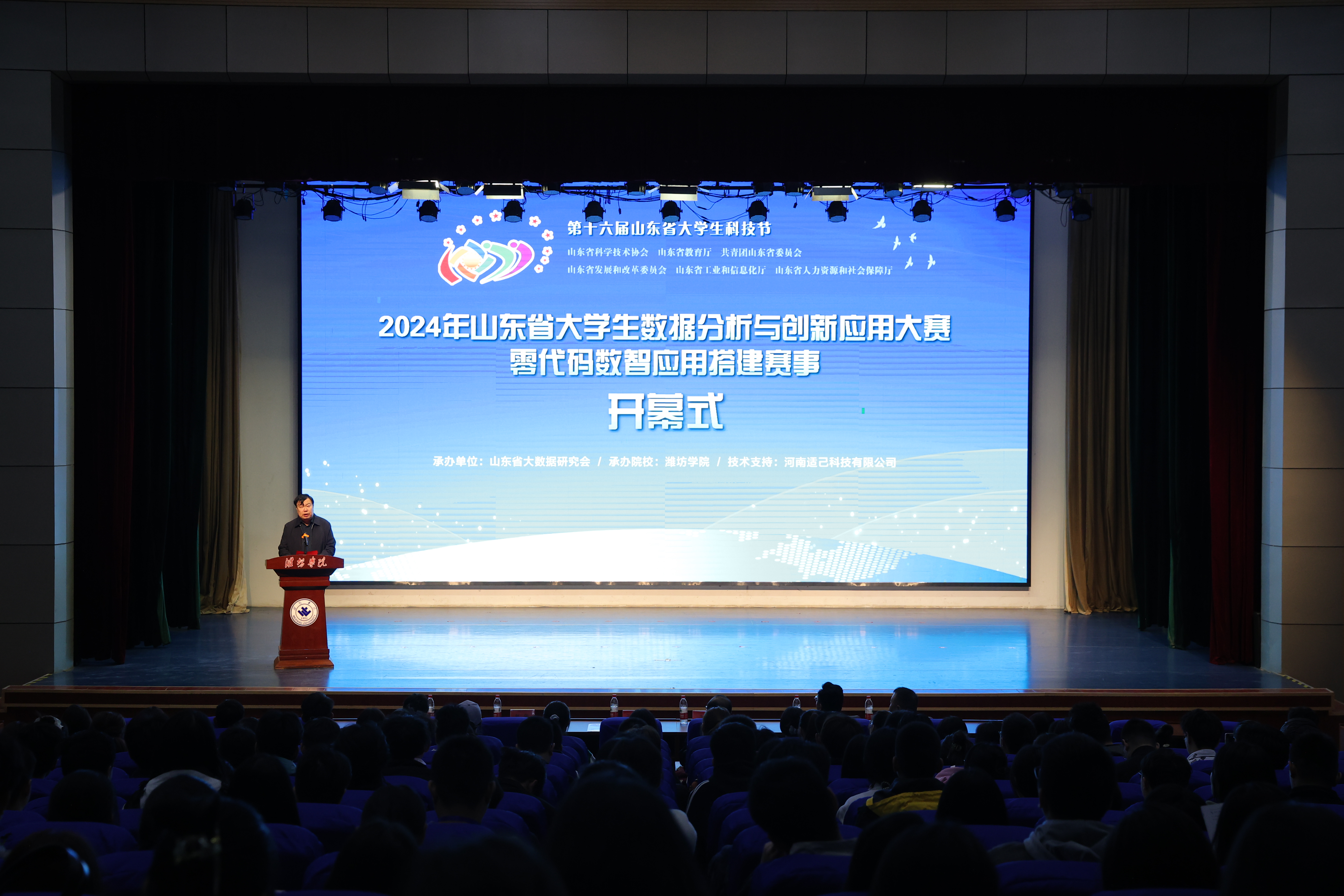 10月19日至20日,第十六届山东省大学生科技节——山东省大学生数据分析与创新应用大赛零代码数智应用搭建决赛在潍坊学院顺利举行。山东省大数据研究会秘书长李敬、河南适己科技有限公司肖云鹏、潍坊学院副校长王成端、潍坊学院经济管理学院院长刘伟以及来自山东各高校近200位老师和学生出席开幕式,开幕式由刘伟主持。经济管理学院教师第二党支部书记陈汇才、徐邦栋、隋玥等陈老师全程参与了赛事的组织管理工作,这也是党支部“强国行”教育服务行动之一。