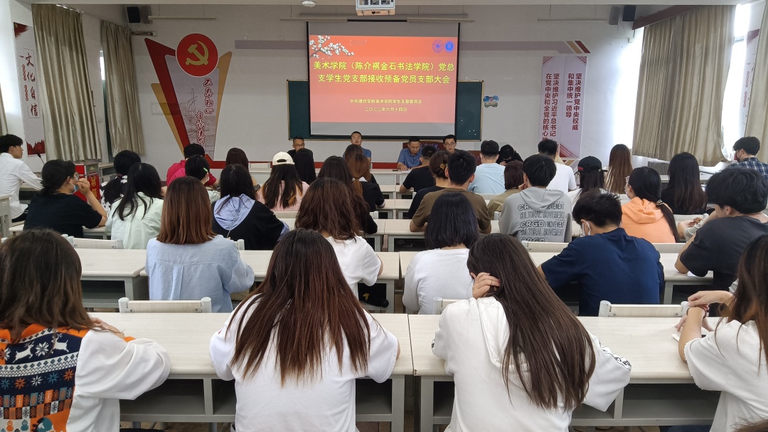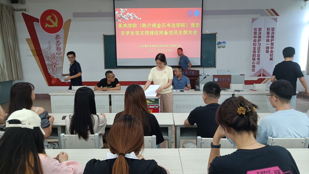 6月14日13时,美术学院学生党支部在荟萃楼1501党员活动室召开支部大会接收预备党员。支部全体师生党员、党员发展对象和入党积极分子参加,支部书记于国主持会议,学院党总支副书记仉新刚到会指导。