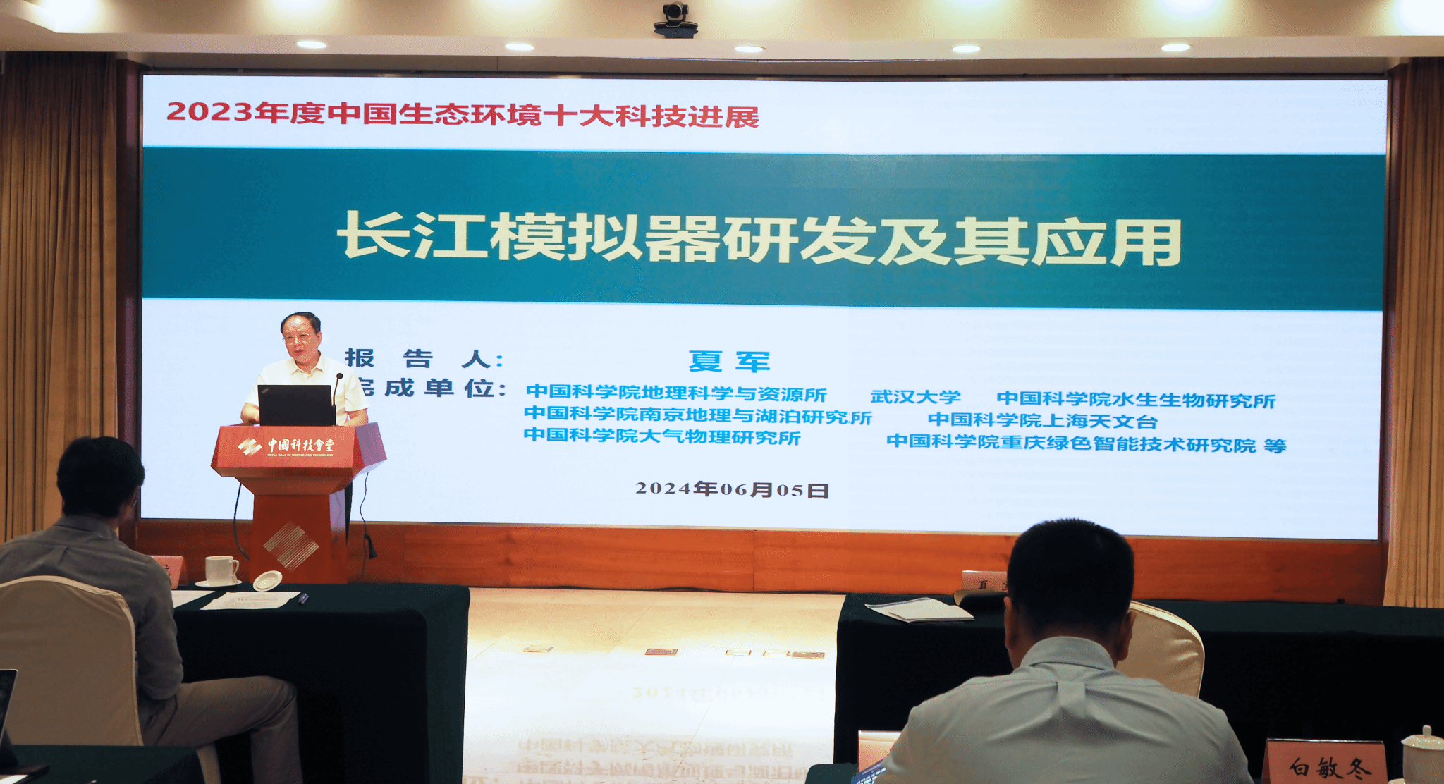 6月5日世界环境日,中国科协生态环境产学联合体在京举行了2023年度中国生态环境十大科技进展发布会。由中国科学院A类战略性先导科技专项“美丽中国生态文明建设科技工程”项目四“长江经济带干流水环境水生态综合治理与应用”主导和国家基金委重大项目“长江经济带水循环与城市群绿色发展”基础研究支持下完成的“长江模拟器研发及其应用”成果,成功入选生态环境十大科技进展。发布会上项目首席科学家、武汉大学教授、中国科学院院士夏军介绍了项目的最新进展。