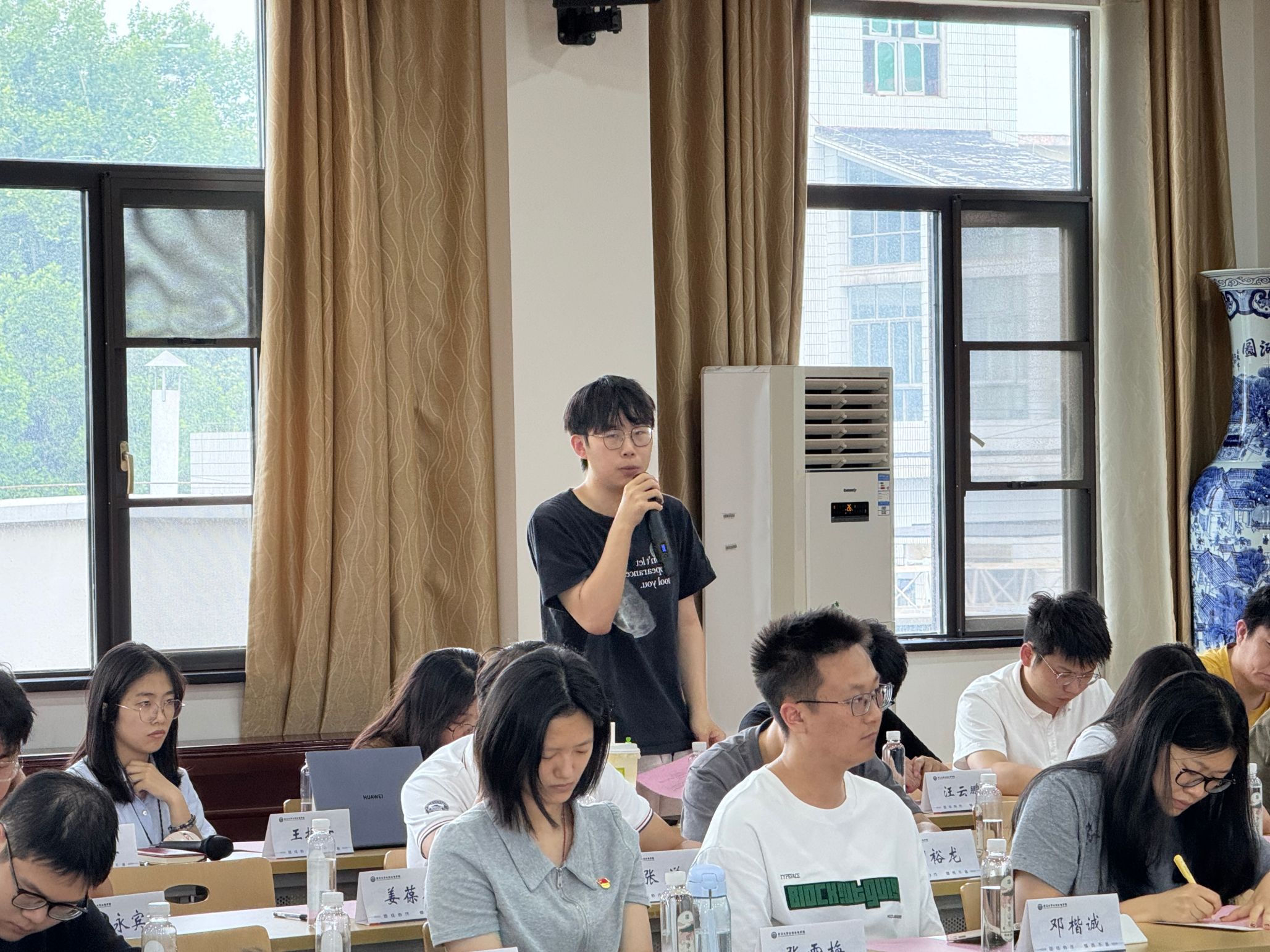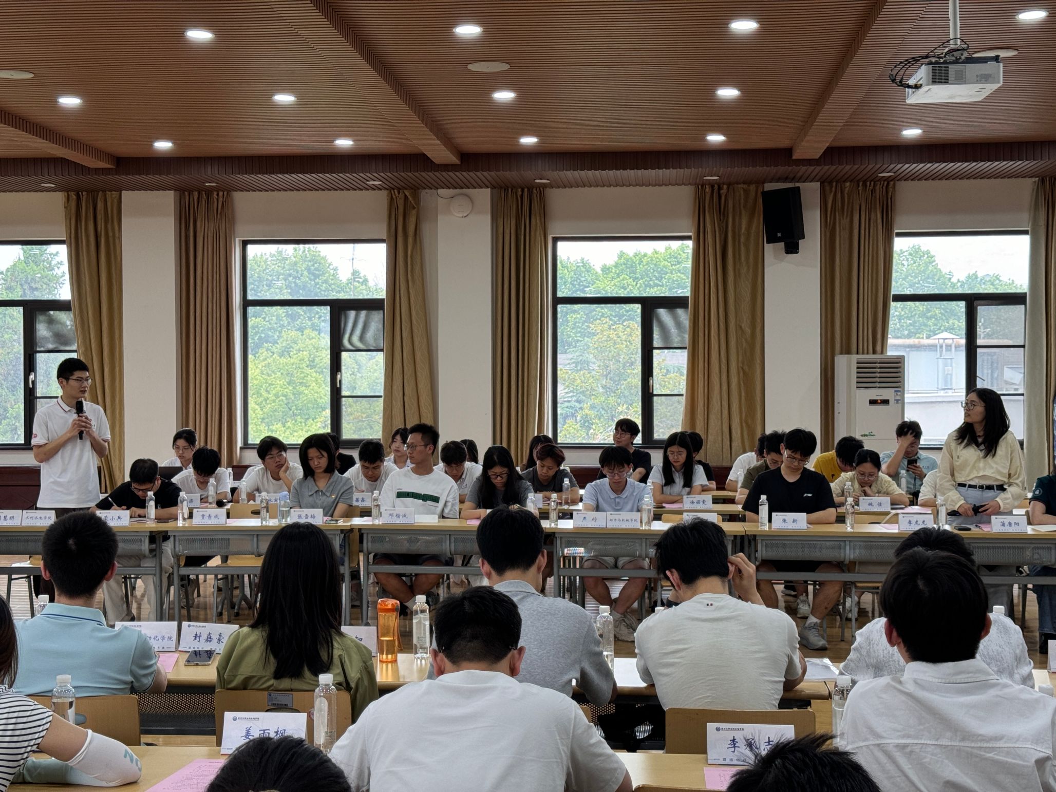 六位研究生党支部书记围绕党建业务融合的创新模式展开了分享交流,彰显了党建引领新成效。动力与机械学院严柠以“烽火课堂与创新工坊的共振”为主题,介绍了能化系师生党支部“红色教育+科技实践”育人模式的构建;水利水电学院周慧明介绍了支部“四位一体:党建引领、学科赋能、校企协同、本研联动”的党建育人模式;土木建筑工程学院姜启武以“支部建在科研项目上”为核心,介绍了支部“党建促科研、科研强党建”的实践案例。工业科学研究院吕菲介绍了党建共同体充实支部成员科研生活的具体做法。城市设计学院王言介绍了支部通过“图说党史”等特色项目实现学科与党建有机融合的经验成效。电气与自动化学院封嘉豪讲述了支部将学习党史与学科特色相融合、强化理论学习与实践能力结合的相关实践。