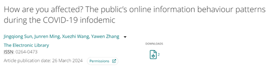 近日,管理学院孙晶琼博士在信息资源管理学科国际学术期刊《The Electronic Library》上发表了论文研究成果:“How are you affected?The public's online information behaviour patterns during the COVID-19 infodemic”(DOI:https://doi.org/10.1108/EL-08-2023-0205)。