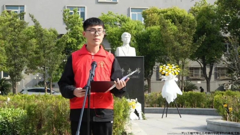 4月1日上午,武汉工程大学本科药卓党支部参加学校在武昌校区许志伟广场举行的“红‘磷’铸魂映初心 英雄精神催奋进”清明祭扫活动。校党委学工部、武装部部长严敏,党委宣传部副部长陈欣,化工与制药学院党委书记杨海波,校团委、党委研工部相关负责人出席活动,活动由化工与制药学院党委副书记、本科药卓党支部书记周丹主持。