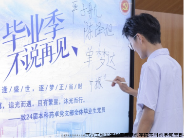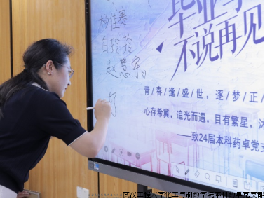 6月5日,化工与制药学院本科药卓党支部在“一站式”学生创新创业空间A3活动室开展“青春逢盛世 逐梦正当时”毕业生党员感恩教育主题党日活动暨毕业生党员欢送会,会上,党支部通过知识抢答题等方式,将党的知识、支部建设情况、专业知识、校园生活等融入活动中,进一步强化党的理论知识入脑入心,带领学生党员重温在校度过的珍贵时光。同时党支部低年级学生党员为毕业生党员送上明信片,向即将踏上新征程的毕业生党员们送上最美好的祝愿。最后支部为毕业生党员们准备了精美的纪念品,支部书记周丹为毕业生党员们送出并寄语。