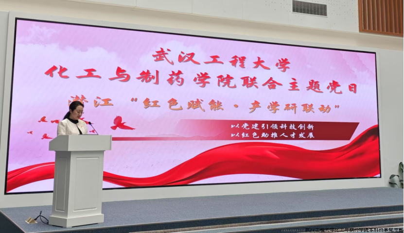 周丹向学生党员提出四点要求:一是以“红色基因”筑牢信仰之基。要传承革命先辈“敢教日月换新天”的革命精神,坚定“听党话、跟党走”的信念,将个人理想融入“化工强国”“健康中国”的伟大事业中;二是以“前沿视野”引领创新之行。要胸怀国之大者,紧盯智能制造、绿色合成、智能制药、低碳化工等全球前沿方向,在学科交叉中寻找突破点,不断成长为“懂技术、会创新”的复合型人才;三是以“工匠精神”锤炼实干之能。要学习潜江企业“精益求精”“十年磨一剑”的坚守与精神,在实验台前追求极致,在实习实训中打磨技能,带着“真问题”做科研,将“实验室数据”转化为“生产线生产力”。四是以“协同思维”践行报国之志。深刻体会潜江“产学研用”一体化的成功经验,主动参与学院与企业的联合课题,既懂实验室“小循环”,更懂产业“大生态”,成为联通科技创新与产业升级的纽带。