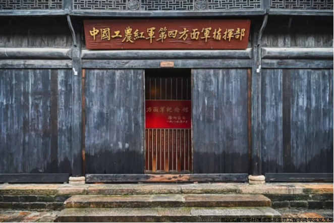 实践团的第二站踏足在七里坪长胜街,这条红安县七里坪镇的主要街道,素来享有大别山区“红色第一街”的美誉。在这里,每一块斑驳的石板都宛如历史的卷轴,细细地记载着革命的波澜壮阔;每一座古朴的建筑都像是历史的见证者,默默地承载着厚重的岁月痕迹。沿着青石板路前行的每一步都仿佛踏出了历史的回响。实践团成员们参观了七里坪工会、鄂豫皖中西药据、苏维埃饭堂等革命遗址,那段艰苦朴素的苏区历史仿佛重现在眼前,在耳闻目睹中感受着“最后一碗饭作军粮,最后一尺布缝军装”的革命精神与奉献精神。