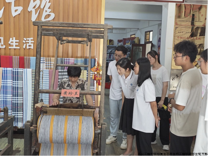 实践团走进红安县非物质文化遗产保护传承基地,感受红色革命历史与非遗技艺文化的碰撞。红安大布传统纺织技艺省级传承人黄珍兰大师向实践团介绍织布机的结构和运行原理,展示自己制作的改良版织布机。实践团成员积极参与体验传统手工艺,深入感受织布的魅力,零距离感悟红安大布制作技艺,全方位体验红安大布非遗文化,感受革命历史与当地文化的融合。这是与历史的互动,与红色温度背贴着背的精密接触,更是文化的传承与交融的集合。