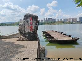 实践团的第二站是长征第一渡口。辽阔清澈的于都河畔,巨石之上篆刻的红字在阳光的照耀下越发夺目。1934年的秋季,在当地人民的帮助下,8.6万的红军战士从这里出发,踏上了充满艰险的长征之路。如今的渡口时过境迁,但矗立的渡口碑和小木船让中央红军渡过于都河的惊险场景再次浮现在实践团眼前。
