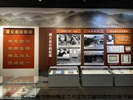 实践团第一站来到了遵义会议会址。1935年1月,中国工农红军长征到达遵义后,中华苏维埃共和国中央革命军事委员会总司部与一局即驻在这幢楼房里。1月15日至17日,遵义会议(即中共中央政治局扩大会议)在主楼楼上原房主的小客厅举行,这次会议确立了以毛泽东为代表的新的中央领导集体,成为中国共产党历史上一个生死攸关的转折点。