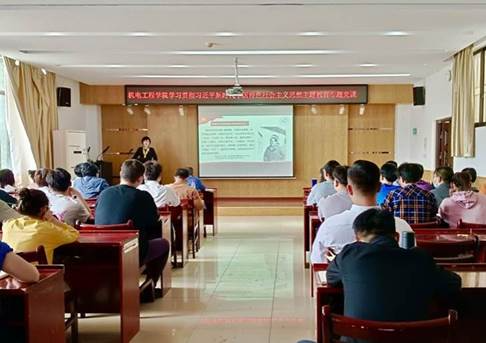 为持续推动深入开展学习贯彻习近平新时代中国特色社会主义思想主题教育走深走实,切实把新时代中国特色社会主义思想转化为全院师生坚定理想、锤炼党性、指导实践、推动工作的强大力量,按照学校关于主题教育的工作安排,5月23日下午,机电工程学院党委书记李芳讲授题为《担当作为促发展 实干笃行建新功——认真学习贯彻习近平新时代中国特色社会主义思想》的专题党课,学院党委理论学习中心组成员、党委委员、全体党支部书记、各系(教研室)主任、化机教工党支部全体党员和学生党员代表、民主党派代表参加学习。