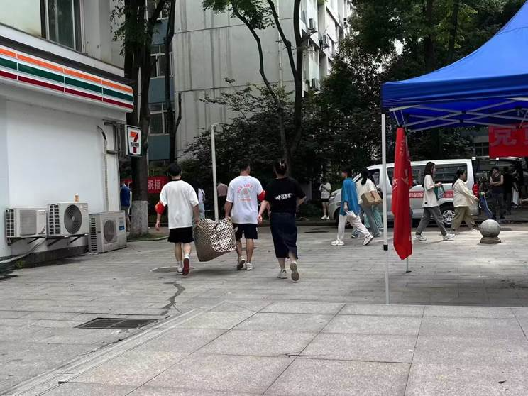 我院瑞雪爱心服务队的同学们帮助毕业生学长学姐们整理宿舍,运送行李,他们拎起毕业生的行囊,送别学长学姐们。