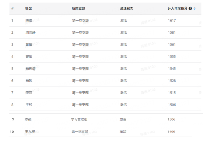 五月份教工第一党支部党员(前十名)“学习强国”学习情况