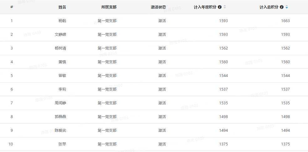九月份教工第一党支部党员(前十名)“学习强国”学习情况