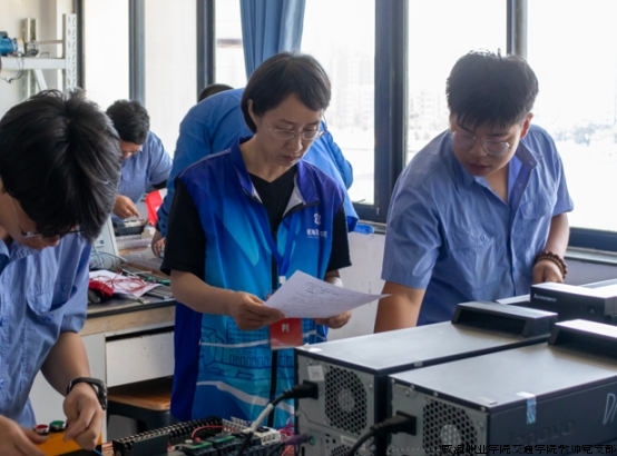 为保障本次大赛顺利进行,学院领导高度重视,成立了技术过硬、全面担当的保障团队,等设立了赛项工作领导小组、赛项工作办公室、赛务组、赛场布置组、技术服务组以及志愿者团队等,其中于胜、李静、陶建海等党员教师冲锋在前,于淑贞院长亲自监督,为赛事顺利举行保驾护航。