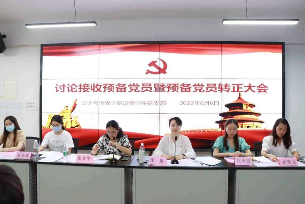 2022年6月6日,设计与传媒学院设传学生党支部在教二B504会议室召开支部大会。大会由支部书记沈敏同志主持,支部全体师生党员、预备党员参会。