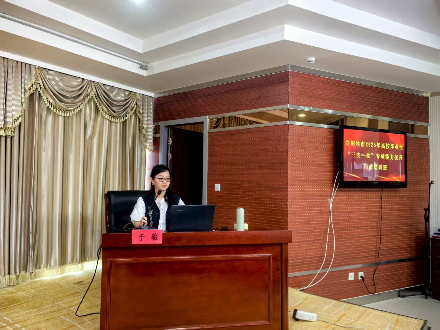 为深入推进“全国高校'双带头人'教师党支部书记'强国行'专项行动团队”项目建设,强化党建引领下的文化育人与实践教学功能,2025年8月,中文系教工党支部党员于薇老师应邀为平罗、红寺堡、青铜峡三地“三支一扶”人员开展“公文写作与行文流程”岗前专题培训,以专业知识赋能基层服务人才,为培训人员尽快适应岗位需求、提升业务能力奠定坚实基础。