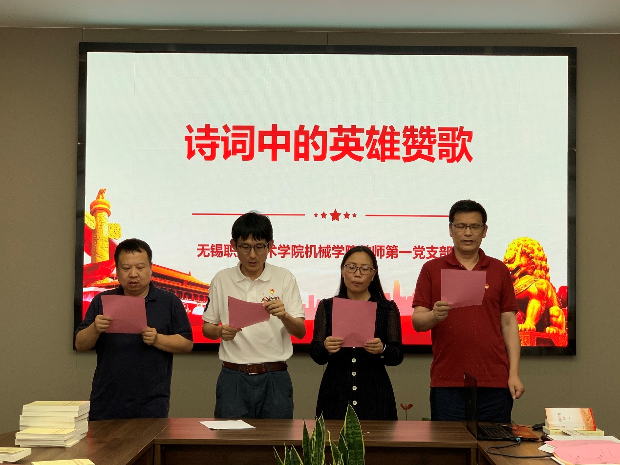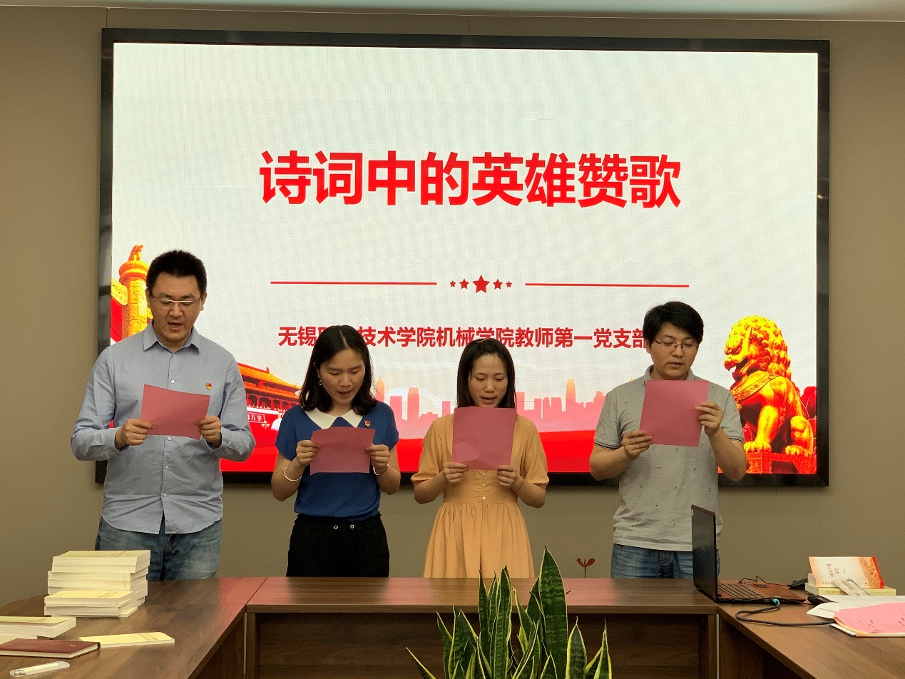 值此建党百年之际,为进一步坚定理想信念,丰富党史学习教育形式,营造“学党史、明党规、勇担当、善作为”的良好氛围,6月8日,机械技术学院教工一支部于工业中心S206开展“革命理想高于天,诗词里的英雄赞歌”——集体诗词朗诵党史教育特色活动。