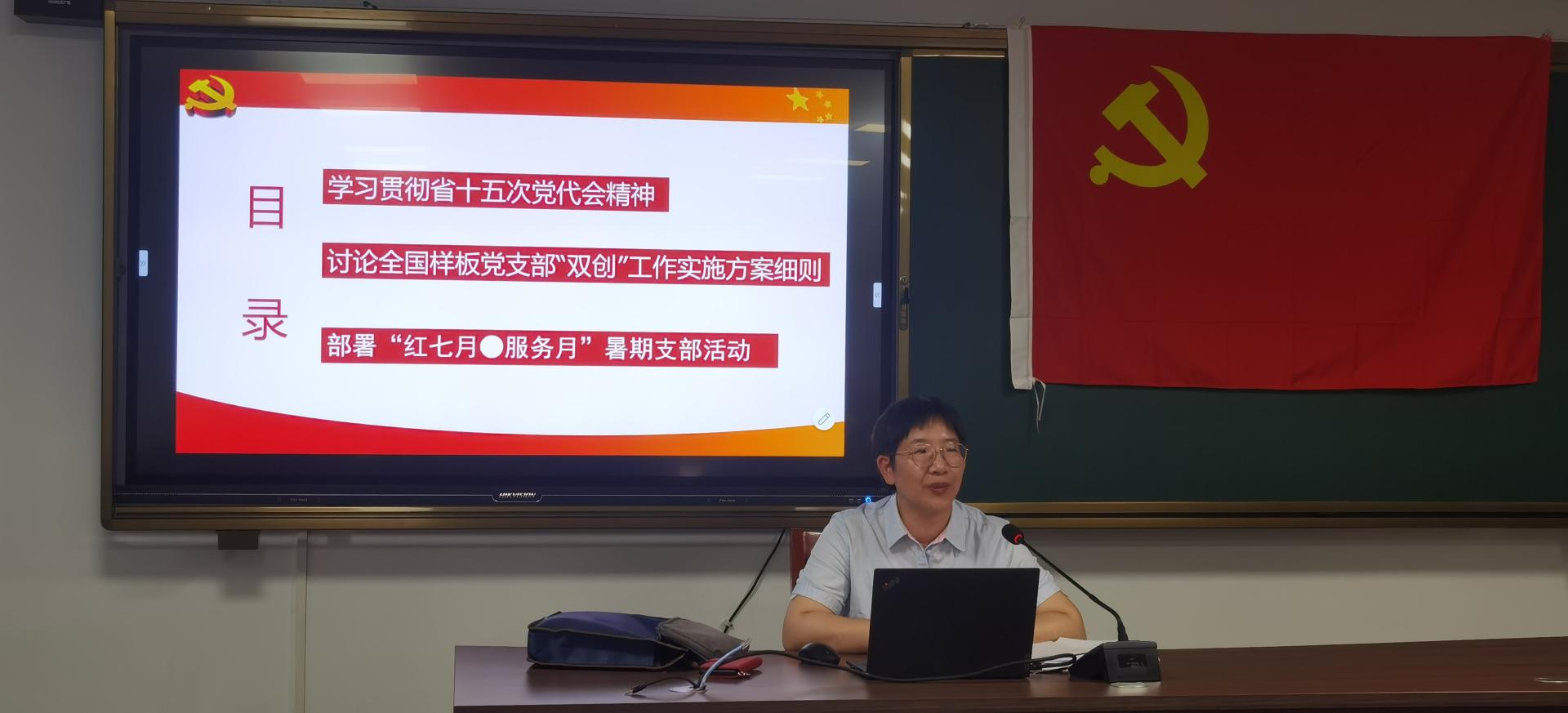 项淳芳结合省党代会报告提出的“打造新时代党建高地”的目标,向支部党员具体介绍了全国样板党支部“双创”工作实施方案、工作目标、计划举措、进度安排,分析了支部建设的现状和亟待解决的问题,动员每一位党员都要秉持“没有走在前列也是一种风险”的忧患意识,增强“当先锋,争先行”的先锋意识和使命感,唯实惟先,以新时代高校党支部“双创”工作重点任务指南为指引,以党支部“七个有力”为建设标准,围绕学校学院稳定改革发展的中心工作开展支部建设,凝心聚力,群策群力,奋力打造教学科研育人服务等标志性成果,实现高质量发展和各项事业全面进步。最后部署和讨论了“红七月∙服务月”暑期支部活动。