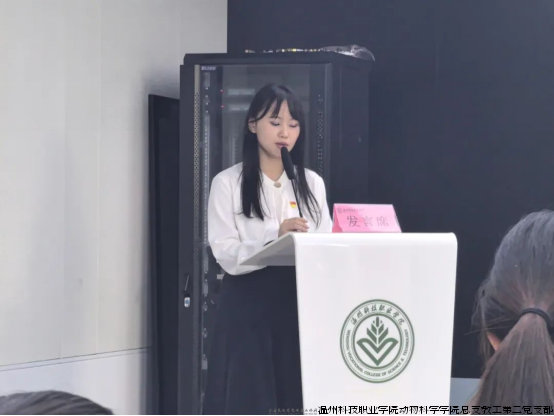 紧接着,动物医学24-4班袁萌作为学生代表带领全体庄重宣誓:“让'五动青春'旗帜飘扬在祖国需要的地方,用专业服务书写新时代动科学子的赤诚答卷!”