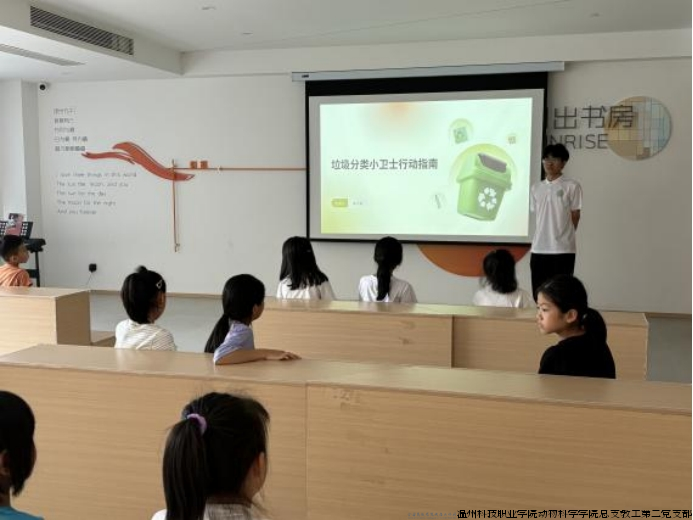 学院关工委指导的“科学养宠”暑期社会实践队成为服务“一小”的主力军。7月1日,在党员教师王政、杨玥带领下,实践队深入社区,创新融合“科学养宠”专业特色与环保理念,开展“垃圾分类,绿色‘童’行”主题活动。队员们化身科普先锋,特别聚焦养宠家庭高频产生的宠物粪便、废弃食品、猫砂、包装等垃圾,用通俗语言和实例,耐心向居民尤其是小朋友讲解分类意义、本地政策标准及投放技巧,解决“分类烦恼”。活动高潮是气氛热烈的“垃圾分类知识竞赛”,题目紧扣“养宠+环保”特色,吸引众多居民踊跃参与。老党员的经验与小朋友的热情碰撞,在寓教于乐中深化了绿色理念。活动有效普及了分类知识,提升了居民特别是儿童的环保意识和实操能力,为社区环境整洁与人宠和谐提供了专业指引。
