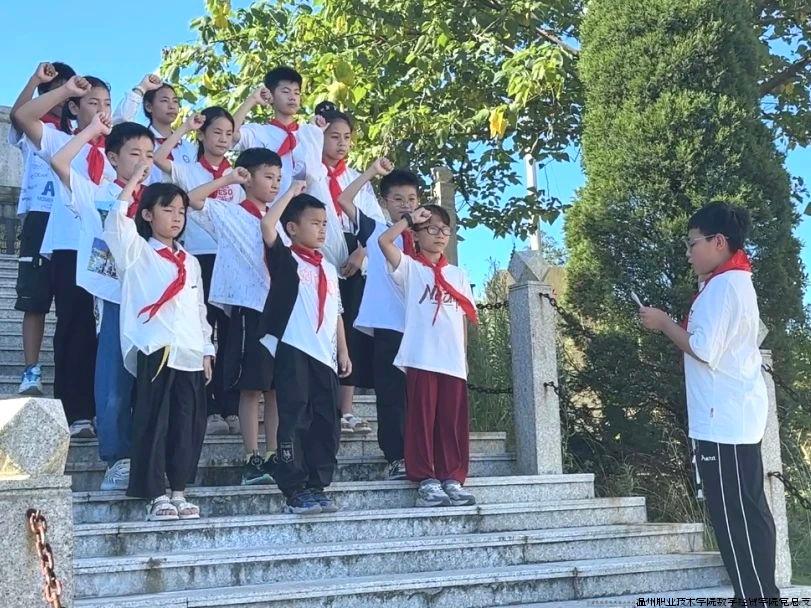 纪念碑作为革命历史的见证者,为了让小朋友们厚植爱国主义情怀,将革命先辈的遗志与革命精神内化于心、外化于行,他们共同在纪念碑下庄严宣誓:“我是中国少年先锋队队员。我在纪念碑下宣誓:我热爱中国共产党,热爱祖国,热爱人民,好好学习,好好锻炼,准备着:为共产主义事业贡献力量!”童真的声音掩盖不住他们内心的坚定,祖国的美好未来也将由我们共同创造。