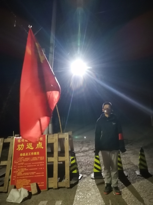 与病毒抗争,与疫情抗争,这是一场没有硝烟的战争。我们谁都清楚,没有侥幸,不能松懈,只有团结一心,才能共度难关。从国家发布一级响应以来,全国人民上下一心,医生护士奔赴一线,党员群众相互配合,我看到的是面对灾难时我们的团结,看到了中国人民对待困难的勇气与担当。作为一个当代新青年,应该担负起自己该有的责任,为社会做出自己的微薄贡献。在村际间封锁出行的这段日子里,刘鑫自愿去路口执勤,量体温,消毒来往车辆人群,做到“逢车必检,逢人必查”,于细微处杜绝感染新型冠状病毒的可能。每天站岗执勤虽然累些,但是心里是充实的,能为社会做出一些贡献,这样的生活才有价值,才有更多的人生意义!于无声处,我们团结一致,一起战疫,你我皆可点亮燎原星火!