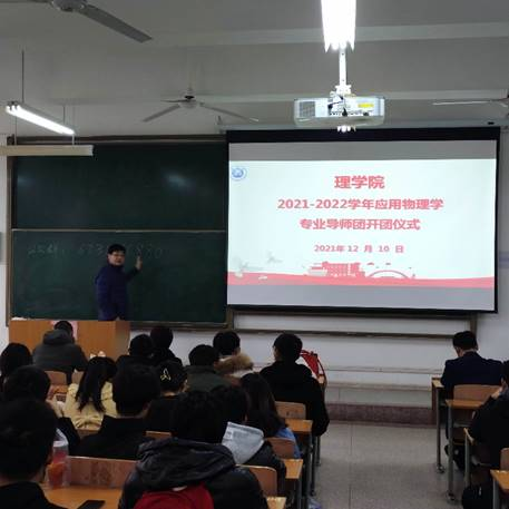 12月10日中午,理学院应用物理专业导师团在临潼校区D282教室举行了2021-2022学年导师团开团仪式,导师团导师苏耀恒、王秋萍、王军、原林、周敏、郝红娟、方青龙、韩小祥、裴环宇、文毅,以及2021级应用物理学专业学生和部分高年级应用物理专业学生参加。仪式由负责王军老师主持。