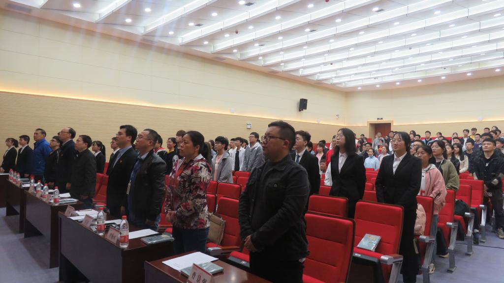 大会在国歌声中开幕,与会人员共同学习去年4月22日习近平总书记莅校考察时的重要讲话。