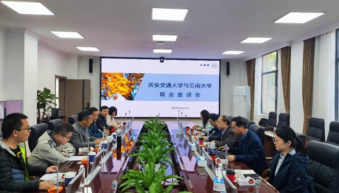 在现场参观后,李黎明院长一行与云南大学孔建勋教授、程中兴教授等人在云南大学东陆校区教育部文科实验室会议室进行了座谈,会议由云南大学孔建勋教授主持。
