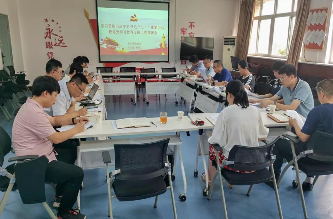 7月6日上午,安全学院在骊山校园14教320会议室召开学习贯彻习近平总书记“七一”重要讲话暨党史学习教育专题工作部署会。学院党委书记杜勇主持会议,学院领导班子成员、党支部书记、党务工作者参加会议。
