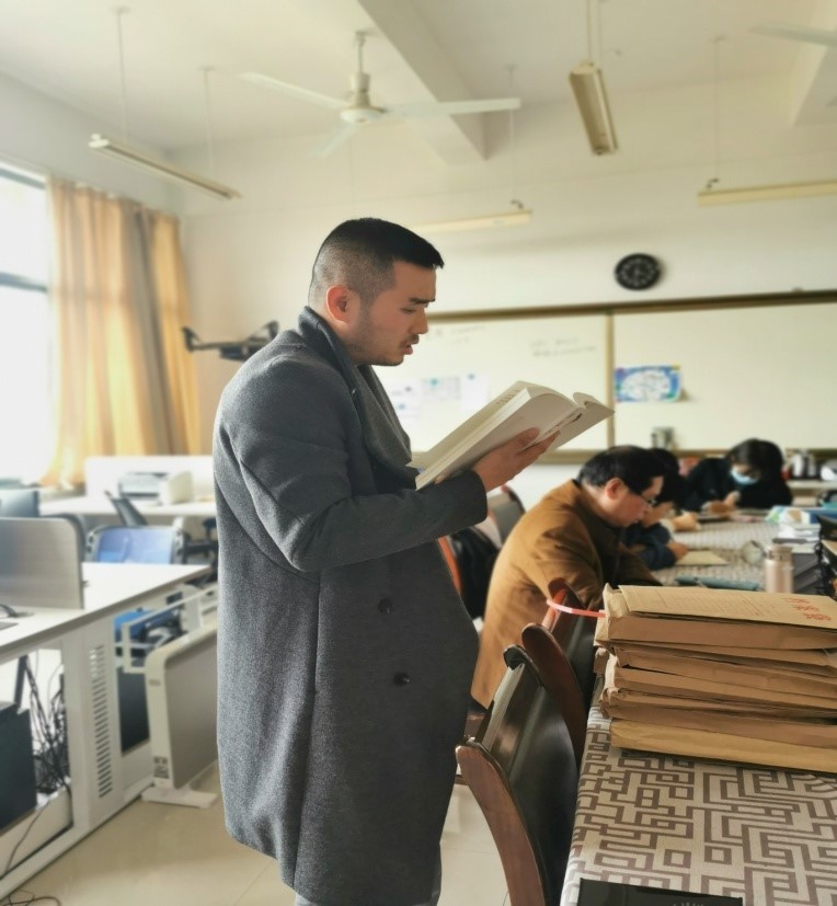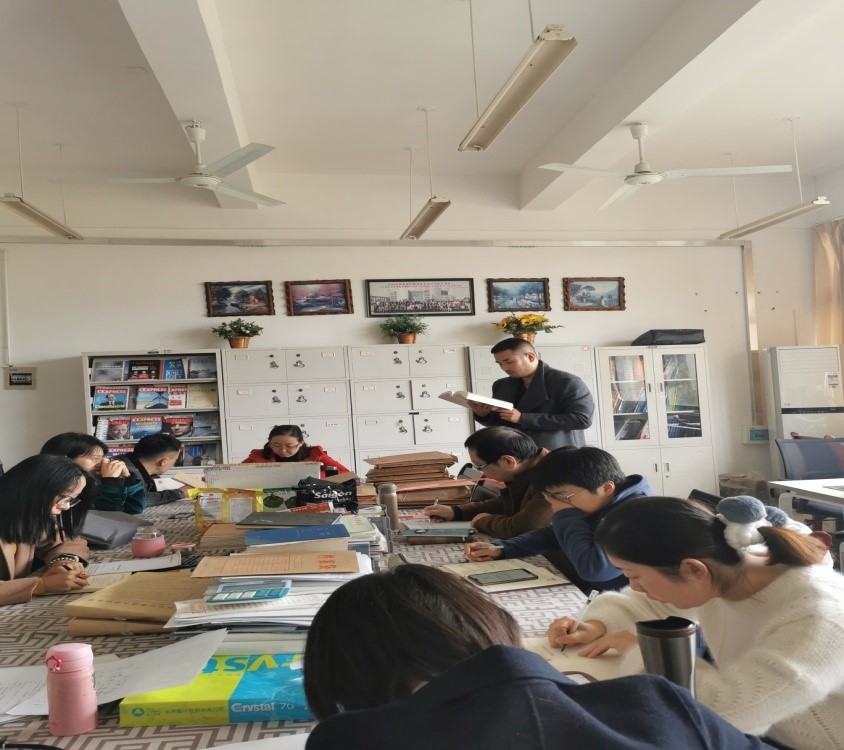 首先,意大利语教师王孟冬领学《用习近平新时代中国特色社会主义思想铸魂育人》。新时代贯彻党的教育方针,要坚持马克思主义指导地位,贯彻习近平新时代中国特色社会主义思想,坚持社会主义办学方向,落实立德树人的根本任务,坚持教育为人民服务、为中国共产党治国理政服务、为巩固和发展中国特色社会主义制度服务、为改革开放和社会主义现代化建设服务,努力培养担当民族复兴大任的时代新人,培养德智体美劳全面发展的社会主义建设者和接班人。希腊语教师谢芷雨领学《人民是我们党执政的最大底气》。中国共产党始终把人民作为“源”和“本”。因为有人民之“源”,所以中国共产党能够永葆青春活力;因为有人民之“本”,所以中国共产党终成参天大树。守好这个“源”和“本”,人民就始终是中国共产党执政的最大底气。