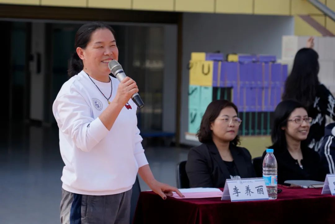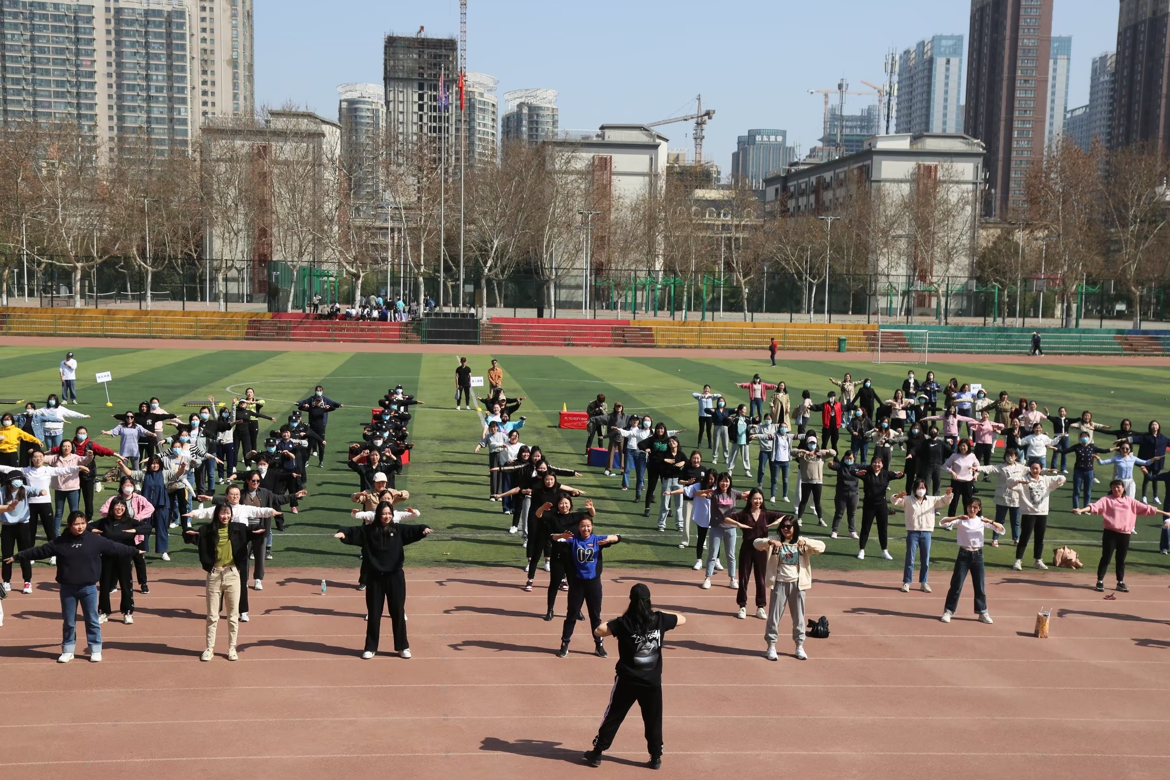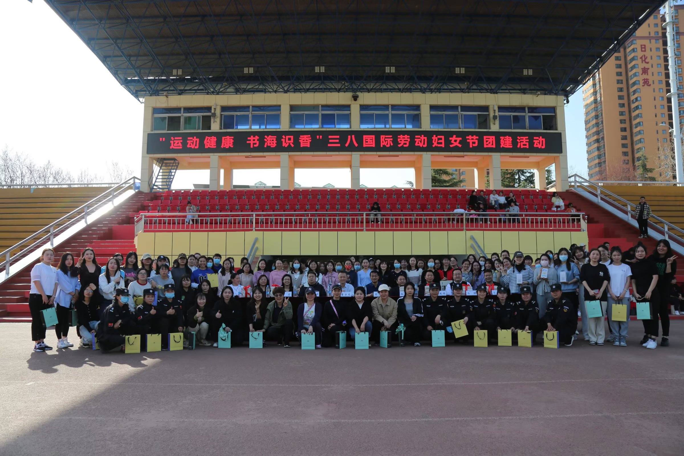 建功新征程·立业展风采,近日,西安外事学院工会举办庆祝第113个“三八”国际劳动妇女节系列活动。3月8日下午,学校工会协同体育运动中心和图书馆举办“运动健康·书海识香”女教职工团建活动,全校140余位女教职工代表齐聚南校区田径场。学校工会主席、行政部部长董宇龙出席活动并致辞。活动由体育运动中心主任、学校工会副主席李养丽主持。图书馆馆长王浩、各二级分会主席参加活动。