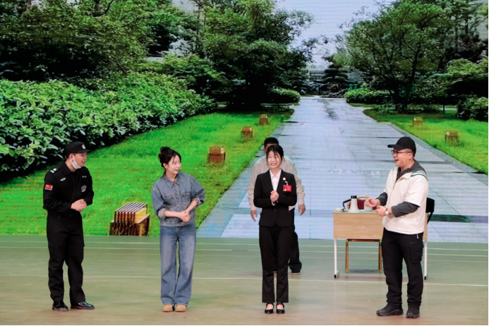 由西安外事学院艺术中心主任邓立鹏,表演系老师陈阳、张维政创作导演的小品《和你在一起》演绎了疫情蔓延的岁月里那些默默贡献的平凡人的动人故事,正能量满满,现场掌声笑声不断。