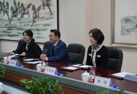 2023年4月24日,韩国世翰大学总长李昇勋一行四人到西安外事学院走访交流,学校理事长、校长黄藤,国际事务负责人戴奇志及国际合作学院相关工作负责人会见来宾。
