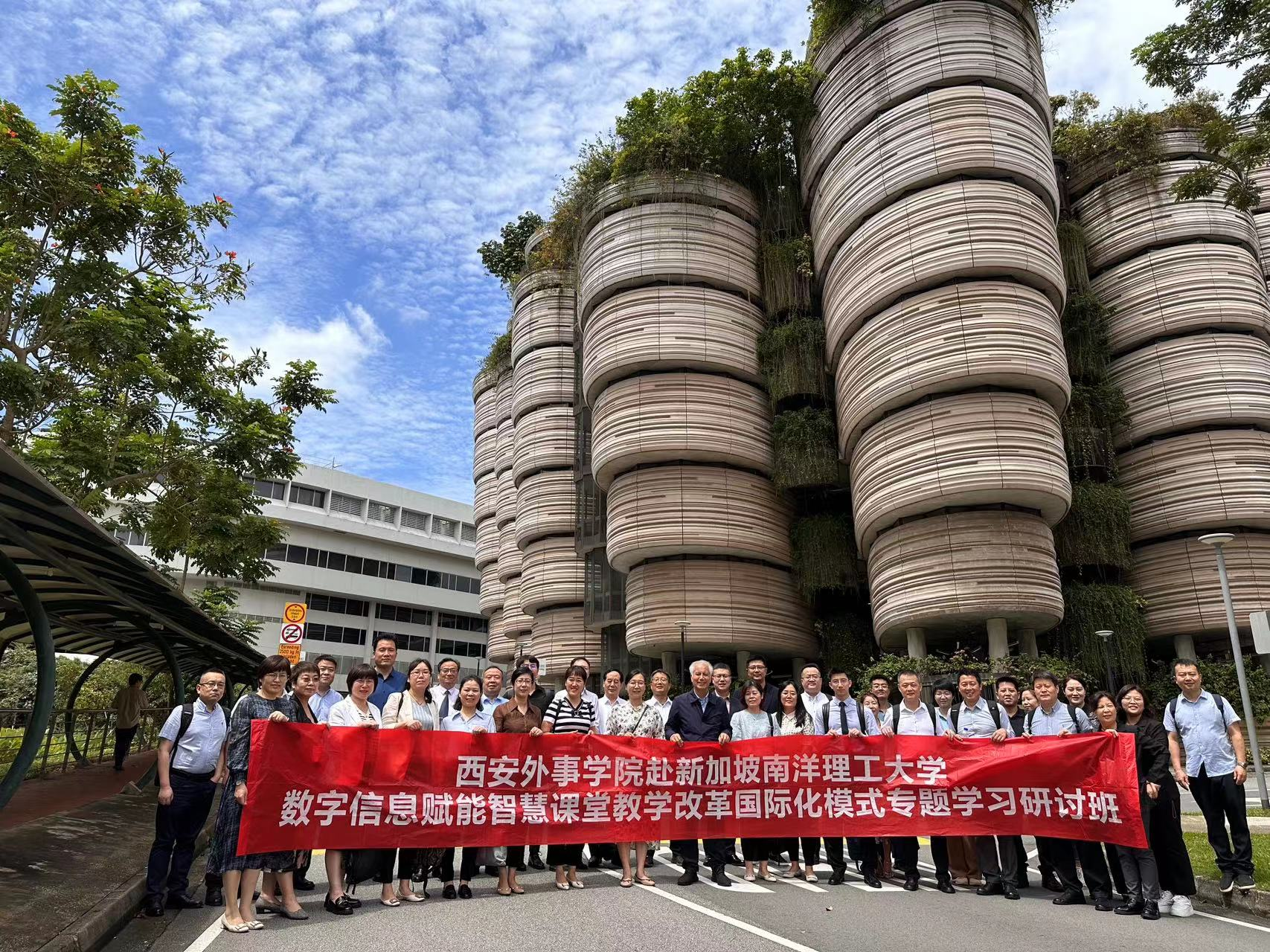 2023年2月,在西安外事学院理事长、校长黄藤的带领下,学校骨干教职员工40余人,专程到新加坡南洋理工大学参加了为期两周的“数字信息赋能智慧课堂教学改革国际化模式专题学习研讨班”。
