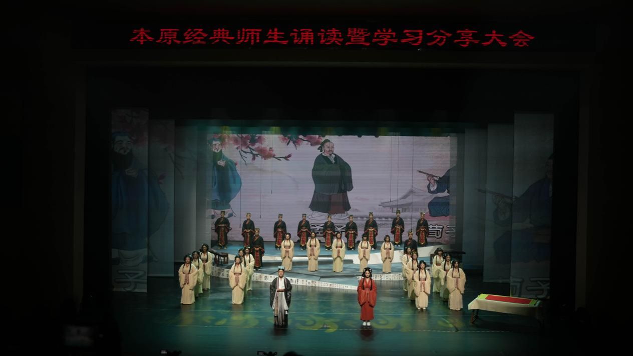 本届本原经典师生诵读暨学习分享大会以“学以为己明道修身,行以为人利他共荣。”为主题,分为兴于诗、立于礼、成于乐三个篇章,来自全校各分会的师生通过演绎、吟诵、对话、朗诵、演唱等形式诵读经典儒家作品,表达和分享自己学习中华优秀传统文化的历程与切身体会,展现了高超的语言功底、丰富的知识积淀和独特的个人魅力。