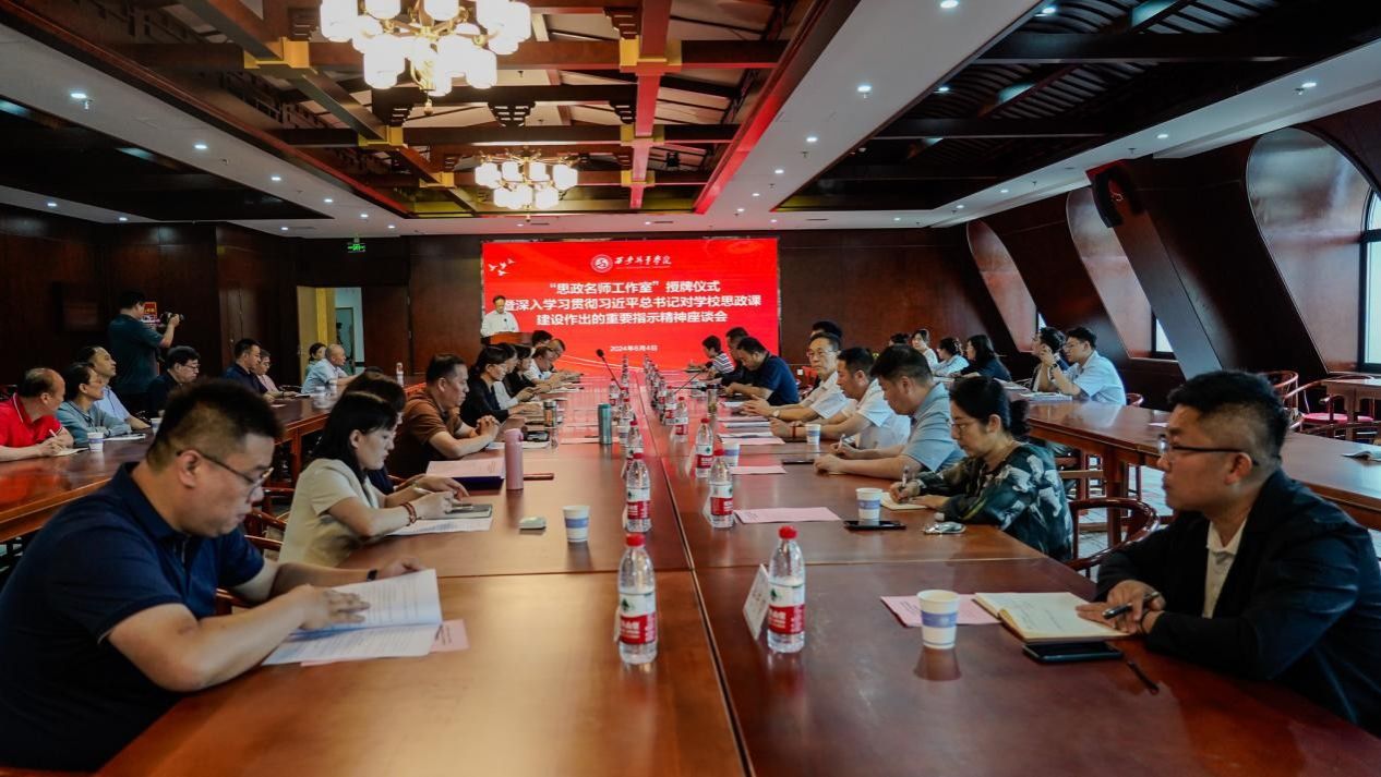 在主题座谈环节,学生工作部部长赵联章谈到,“思政名师工作室”从2023年7月21日“吕红波思政名师工作室”正式挂牌,到今年6月初新增设四个“思政名师工作室”,使得五个书院全覆盖,是学校大思政育人工作的一个重要举措,是思政教学工作的主渠道。党建工作要深入到学生社区,增加数字赋能和文化建设,要以“思政名师工作室”为引领,进一步把“思政名师工作室”与学生的日常思政工作融合起来,更好更快地让青年教师成长起来。